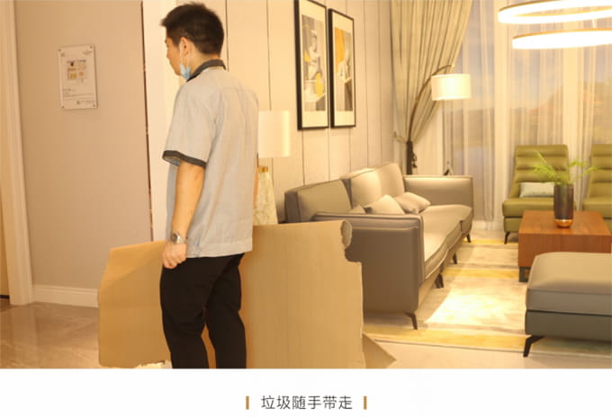 产品处理完毕后必须一站式通检,指导客户使用,并将服务过程中产生的垃圾随手带走,家具维修完毕后,应用毛巾将家具擦拭一遍,确保产品清洁。